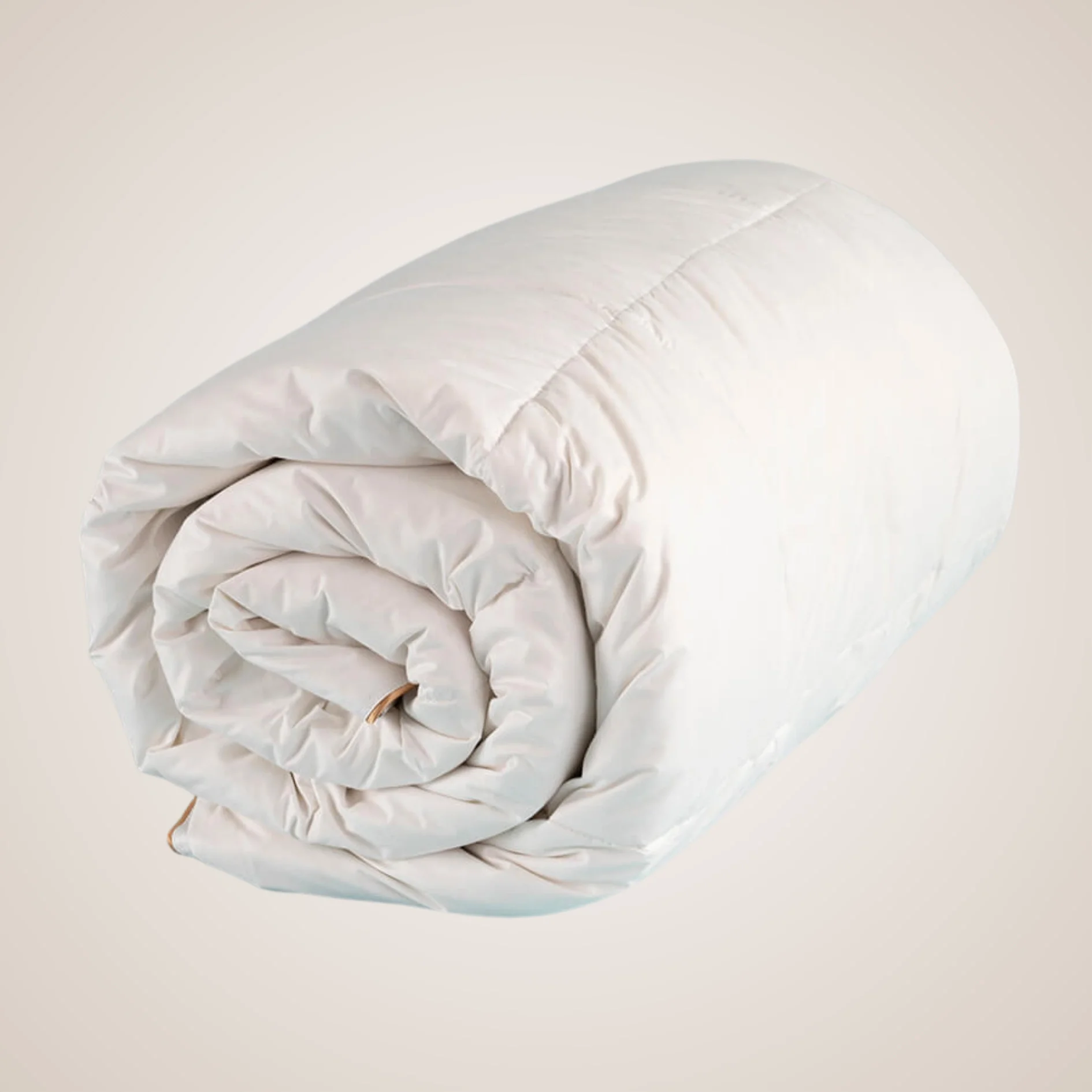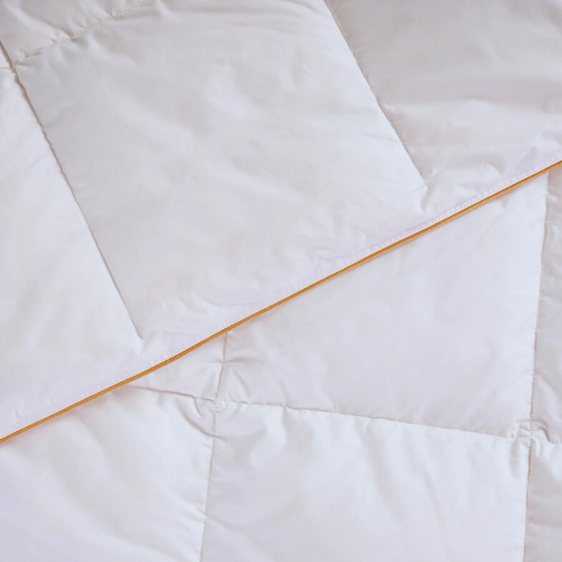 5 üzerinden 4 ısıtma derecesine sahip sıcak yapısı ile soğuk kış gecelerinde ideal kullanım sağlar. Tüy geçirmeyen ekru renkli düz pamuk kumaşı, No Mite sertifikasına sahip olup, toz akarı ve ev tozu alerjisi olan kişiler için uygundur. Bakteri barındırmayan yapısı ile hijyenik bir uyku ortamı sunar. Altın renkli biyeler, ürünün üstün kalitesini ve şıklığını vurgular.
